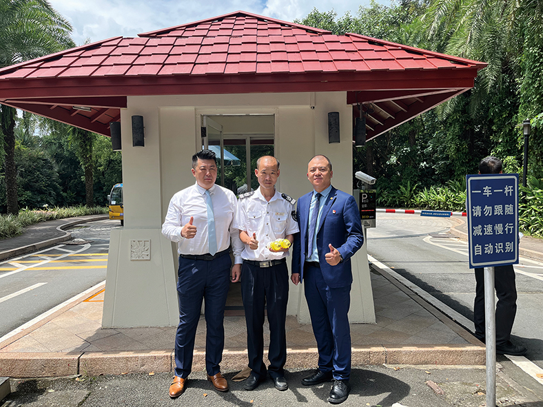 塘厦三正半山温泉酒店副总经理潘林带领酒店管理人员为户外工作的同事送清凉