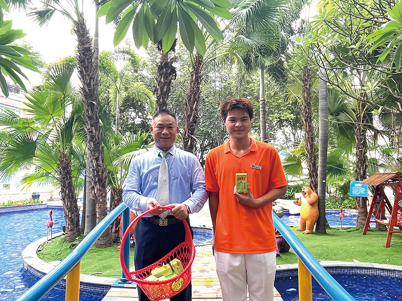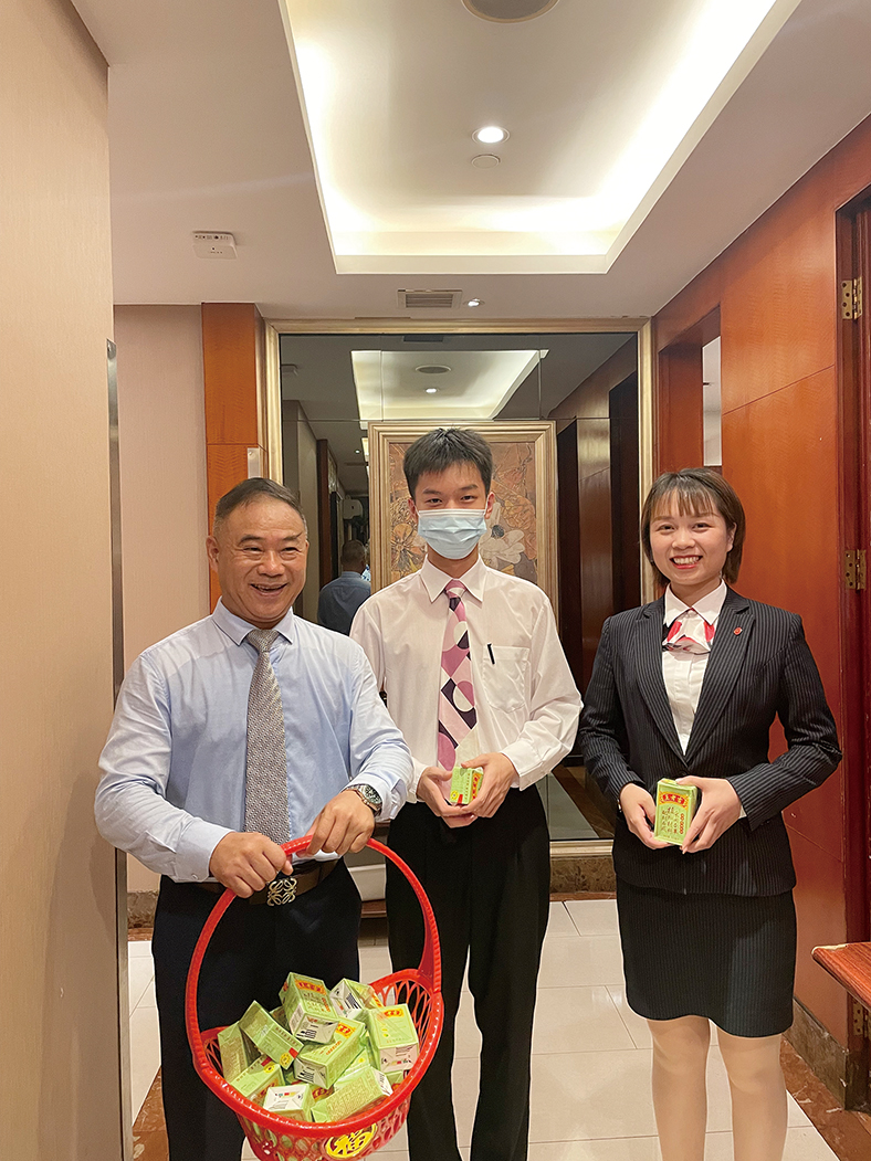 另外,8月16日下午,桥头三正半山酒店也开展了“夏日送清凉”慰问活动,李启清总经理带领慰问小组到酒店各个区域,为每一位员工送上清凉。每到一处,李总不仅为员工送上清凉茶,还深入了解员工的工作、生活情况,叮嘱员工要注意防暑、保重身体,并感谢他们为酒店做出的贡献。