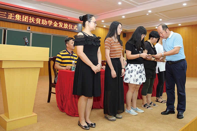 - 集团为捐建的13所学校表现优秀的师生及贫困家庭的学生颁发了共计29.58万元的“三正奖教助学金”。