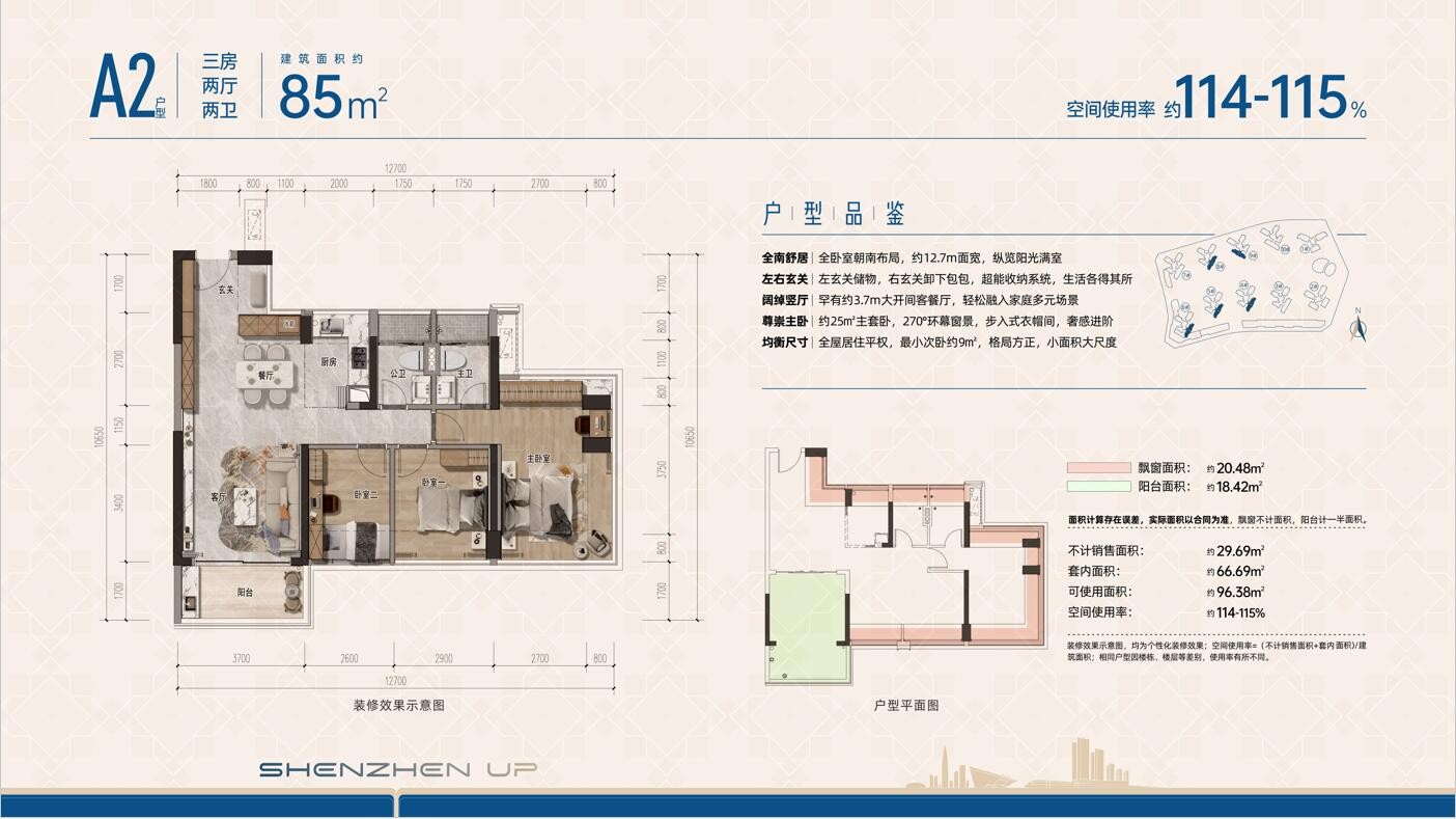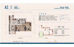 A2户型,85平方米三房两厅两卫