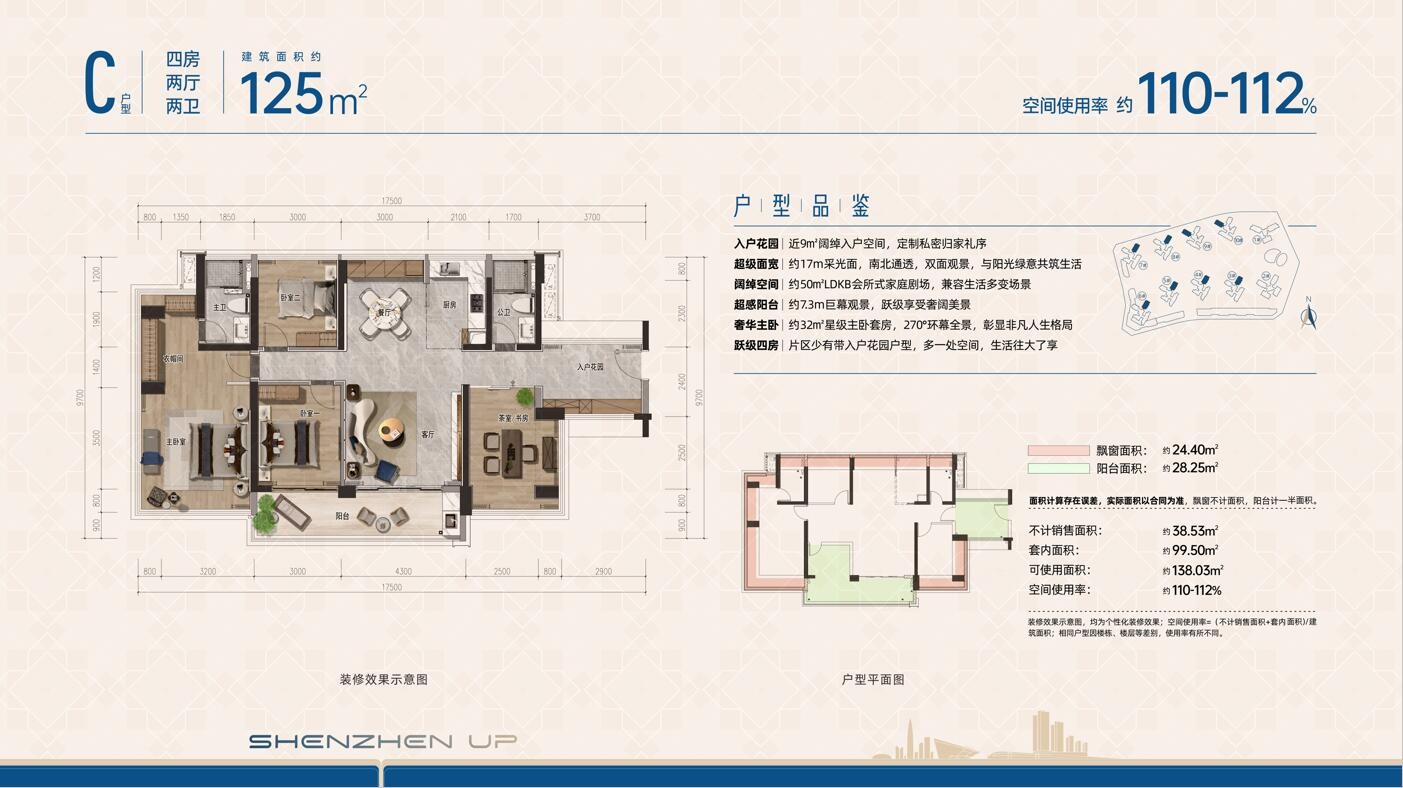 C户型,125平方米四房两厅两卫